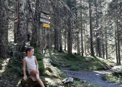 Marche d’env. 1h (avec enfant) sur un joli chemin de forêt plat et ombragé le long de la Vièze jusqu’à la buvette de They.