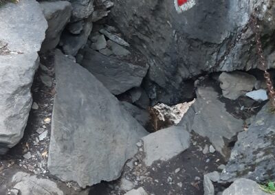 Le passage du Trou à l’Ours est un passage étroit entre les cailloux qui nécessite d’utiliser une chaine pour pouvoir se hissser (déconseillé avec des enfants en bas âge).