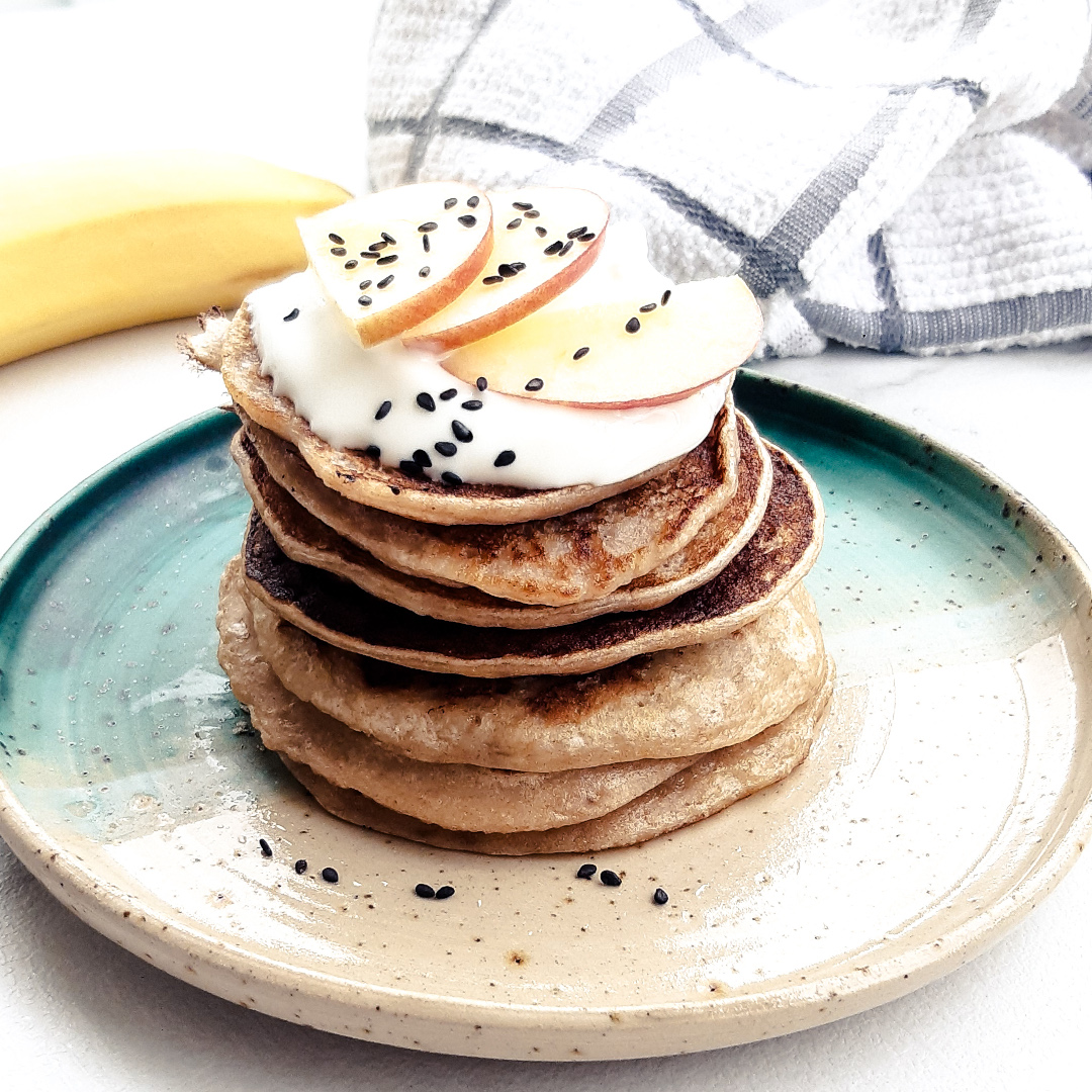 Ces pancakes vegan à la banane peuvent aussi être réalisé avec des flocons d’avoine ou de quinoa à la place de la farine, afin de réduire l’index glycémique.